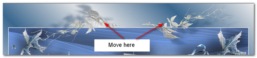 39. Place leaves in upper right corner. Duplicate. Resize by 80%/Resize all layers unchecked. Place leaves in upper left corner.