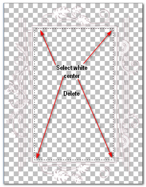 7. Open masque_tut_precious_day.png of frame. Using Selections tool, select the inner white part of the frame leaving a narrow border. Delete. CTRL+D. Copy.