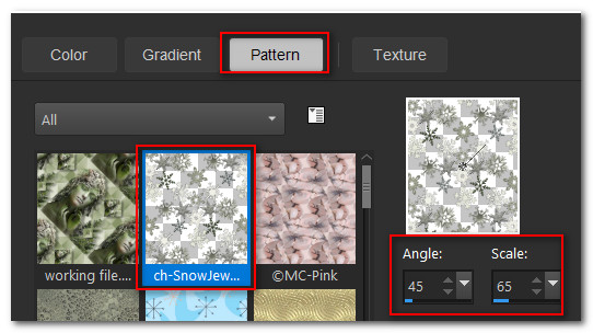 35. In Materials Palette, select Pattern. Set the Angle to 45, Scale to 65. Flood fill the large border.