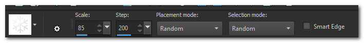 17. From tool bar select Picture Tube tool/Snowflake medium.PspTube. Set Scale to 85.