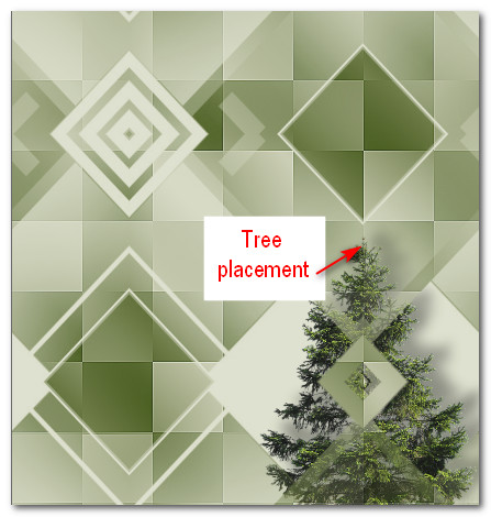 12. Move to bottom right corner and drag layer below Layer Group - Raster 2 so top of tree is under bottom of top diamond. Highlight Group - Raster 2 Layer.