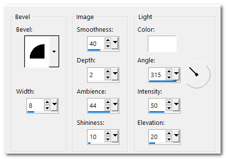 23. Effects/3D Effects/InnerBevel. Deselect.