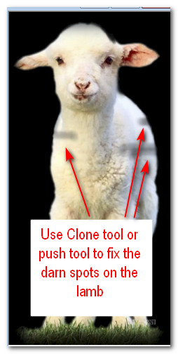 30. Copy/Paste as New Layer on your working image. Use Clone tool or push tool and correct the dark spots on the lamb.