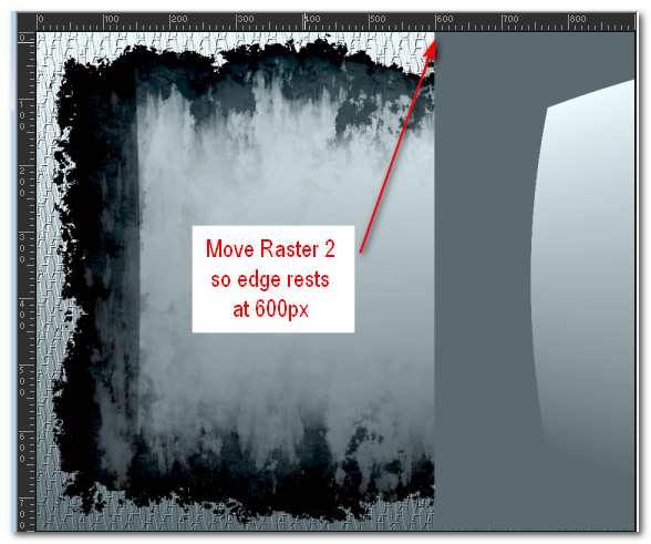 9. Go back to top layer (Raster 2), open and highlight. Move to right so edge rests on 600px.
