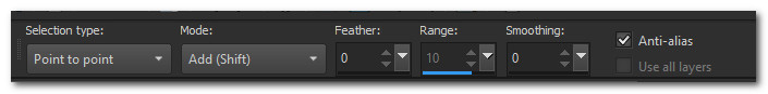 13. Using Magic Wand Tolerance set to 15, Anti-alias ticked, Outside selected, click on the Lens Distortion on right side of image to activate it. You may have to click on it more than once to activate it all.