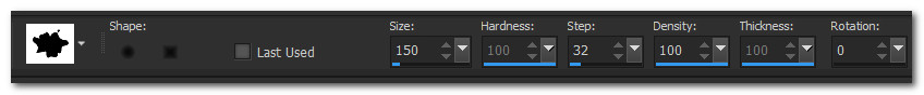 47. Change Foreground back to Foreground #ebfbff. Choose brush inksplat2. Set Size to 150/Rotation to 130. Left stamp once. Change Background to #000000 and right stamp inksplat2 again over the others.