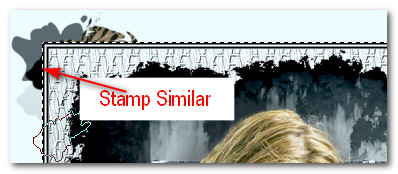 45. From tool bar select Paint Brush tool. See below for brush placement. Choose inksplat1. Set Size to 150, use color #4f5f65 in Materials Background, right click in top left corner once. View Step 47 for placement.