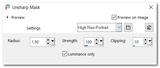 17. Adjust/Sharpness/UnSharp Mask. Deselect.