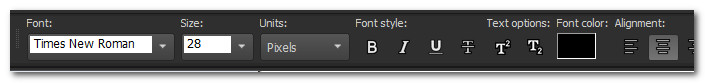 45. Change Background color to #000000. From the tool bar select the Text Tool/set Font to Times New Roman, Size 28, Stroke width: 0.0./Kerning to 25/Styled line Solid/Color #000000.
