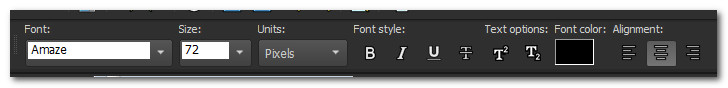 43. From tool bar select the Text tool. Set to Font: Amaze, Size 72, Font color #000000, Stroke width: 0.0. Type out the word "Fall".