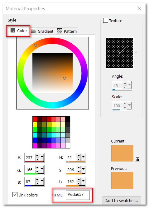 1. In Materials Palette, set Foreground to #eda657, Background to #000000.