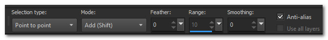19. Flood Fill tool Match mode: set to None/Flood fill selections with background color #000000.
