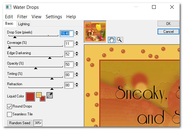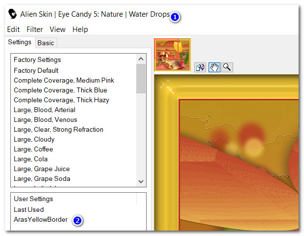 36. Effects/Alien Skin|Eye Candy 5: Nature|Water Drops. Use ArasYellowBorder setting.