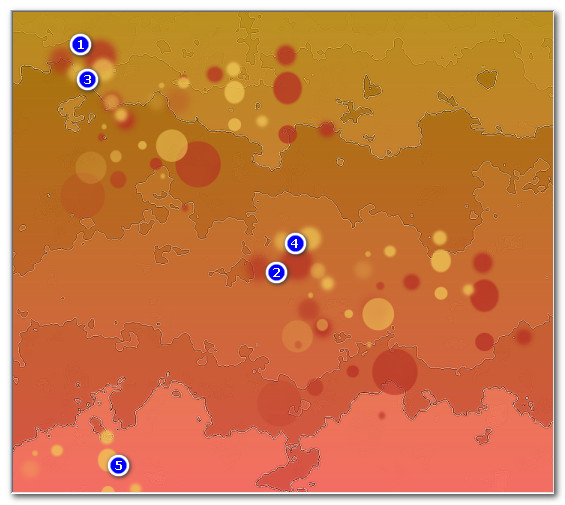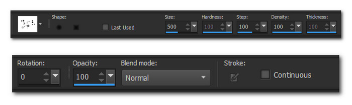8. From tool bar select Paint Brush tool. Select Bokeh_33 Brush. Change Size to 500 for Background stamping of color 1 and 2, then change Size to 350 for Foreground stamping of 3, 4 and 5, all other settings remain at default.