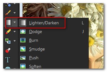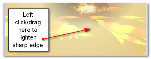 21. From Tool bar select the Lighten/Darken tool. Left click and drag to erase the center sharp line of the sunset scene as seen below.