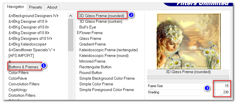 48. Effects/Filters Unlimited/Buttons & Frames/3D Glass Frame (rounded).