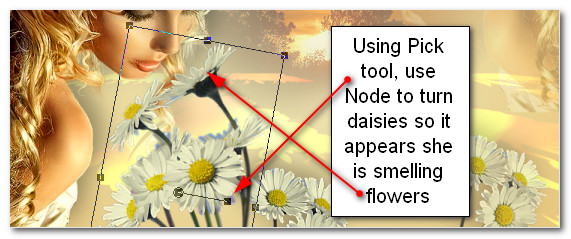 38. Use Pick Tool to turn daisies so it appears she is smelling the flowers. Adjust flowers as needed.
