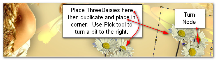 45. Use Pick Tool to turn daisies so they lean toward the left. Have top daisy on her shoulder.