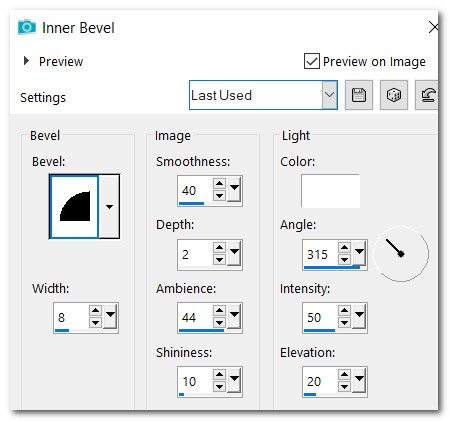 30. Effects/3D Effects/Inner Bevel. CTRL+D.