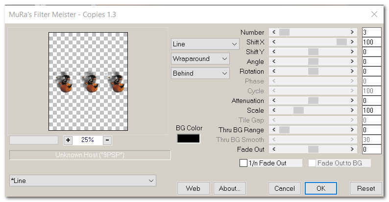 Create a folder on your desktop named Ye Haw It's Halloween. Unzip the materials zip file into this folder. Place the mask BJ3 in your PSP Files/Masks folder. Install the font It Lives In The Swamp (BRK) in your PSP. I have used the plugins Graphics Plus/Quick Tile l and MuRa's Meister/Copies in this tutorial as well as effects of the PSP. I used PSP 2019. To work this tutorial, it is assumed you have some working knowledge of Paint Shop Pro.