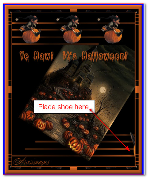 47. Go back to the main image. Edit/Select All. Right click within the first frame/Paste/Into Selected Frame. Place the first frame shoe to the right side of image/second line up.