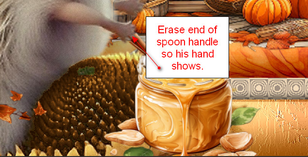 41. Place jar over the right side of the Sunflower so the spoon is a little over the Hedgehog's hand. Use Eraser tool set to Size 7 to erase the end of the spoon handle so it looks like the Hedgehog is hanging on to it.