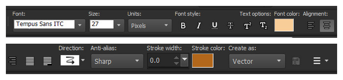 46. From tool bar select the Text tool. Set it to what you see in snapshot below/Kerning at 15.