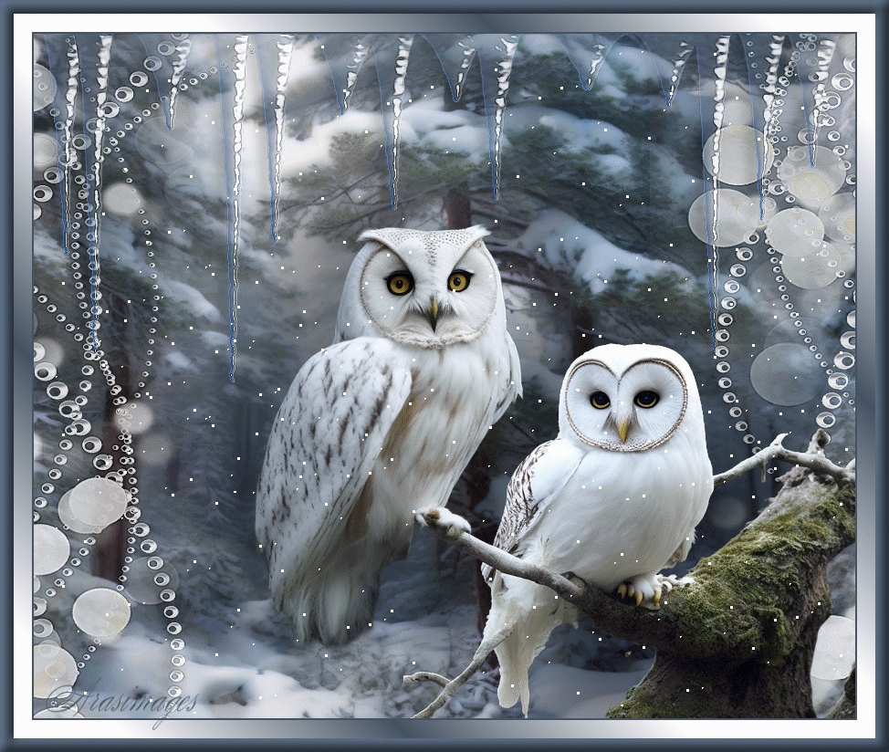 This tutorial was written using the zipped materials in the download. Create a folder on your desktop called Owls in Winter and unzip the materials in to it. Click on the ArasimagesIcicles.fs1 in materials and it will automatically install in your Eye Candy 5: Nature plugin. I have used Animation Shop in this tutorial. I have used the effects of Xero/Porcelain and Alien Skin Eye Candy 5: Nature and effects of PSP 2020. To work this tutorial, it is assumed you have some working knowledge of Paint Shop Pro.