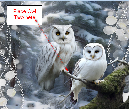 16. Place it as though it was sitting on end of branch the other owl is sitting on.