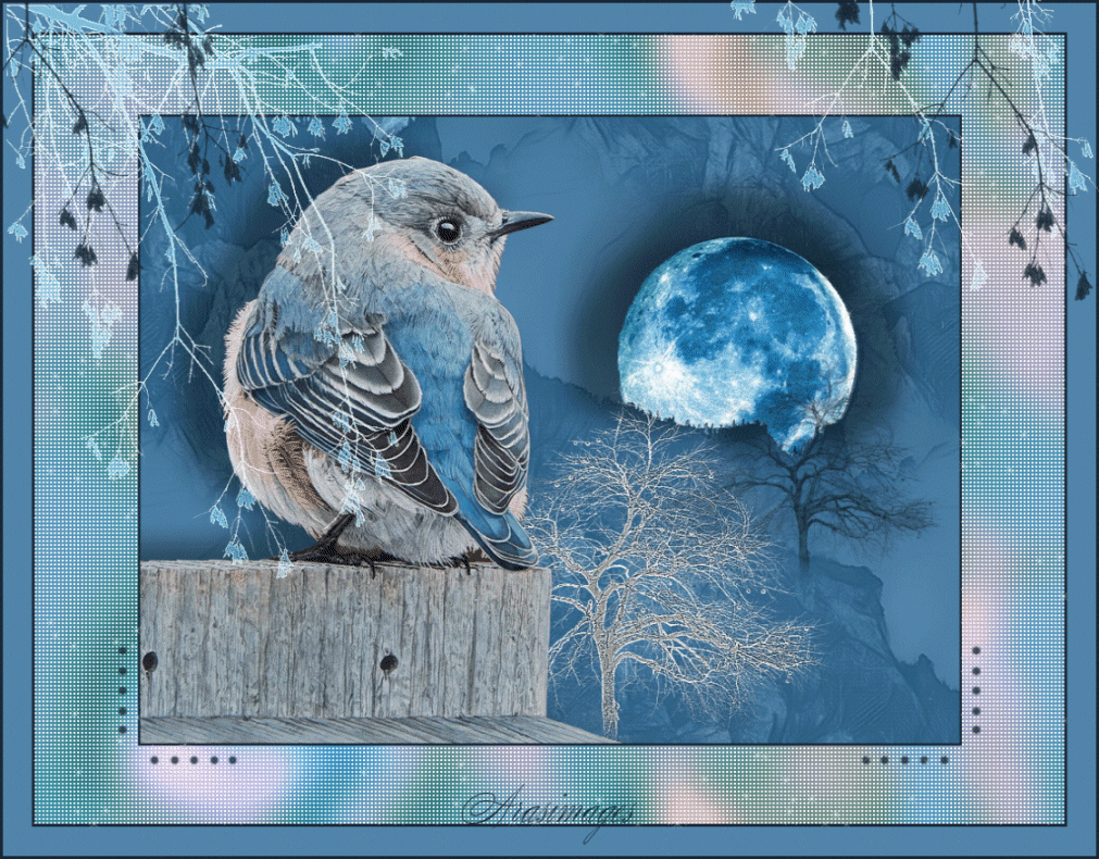 Thanks go to Linda Youngblood for her beautiful photography of the moon. CorbyAmos reference photo/ ShirleyGreenville artwork was found on the internet. Thanks to them both for their beautiful bluebird image.