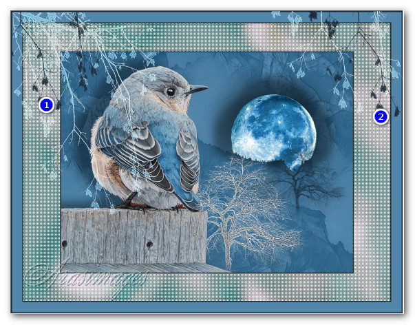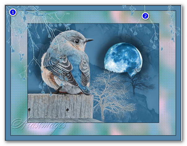 58. Open middle and top layers. File/Save As/Save in: (your working folder), File name: Bluebirds of Midnight and Save as type: PSP Animation Shop (*.psp).
