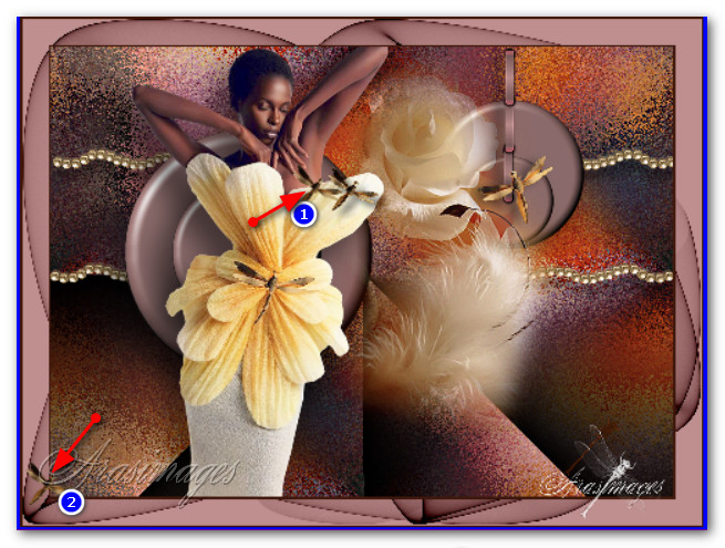 48. On main image, right click in first frame/Paste/Into Selected Frame. Hover the dragonfly to where you want it (next to dragonfly on petal) and left click to set in place.