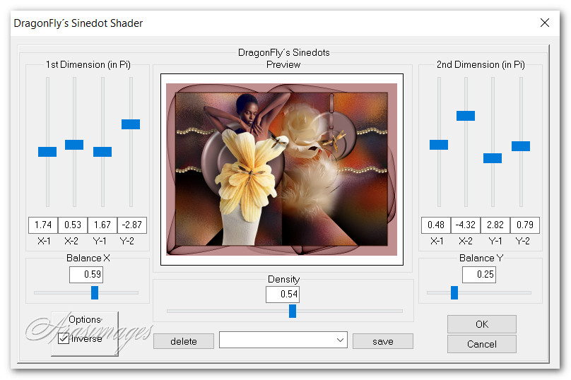 43. Effects/Dragonfly/Dragonfly's Sinedot Shader. Use settings as seen below.